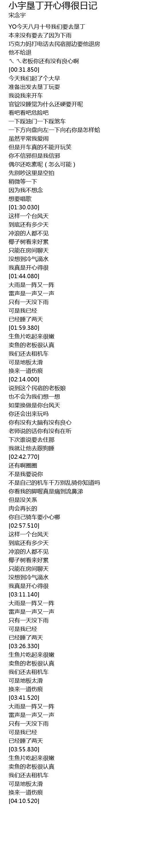| [00:18.970] | YO今天八月十号我们要去垦丁 |