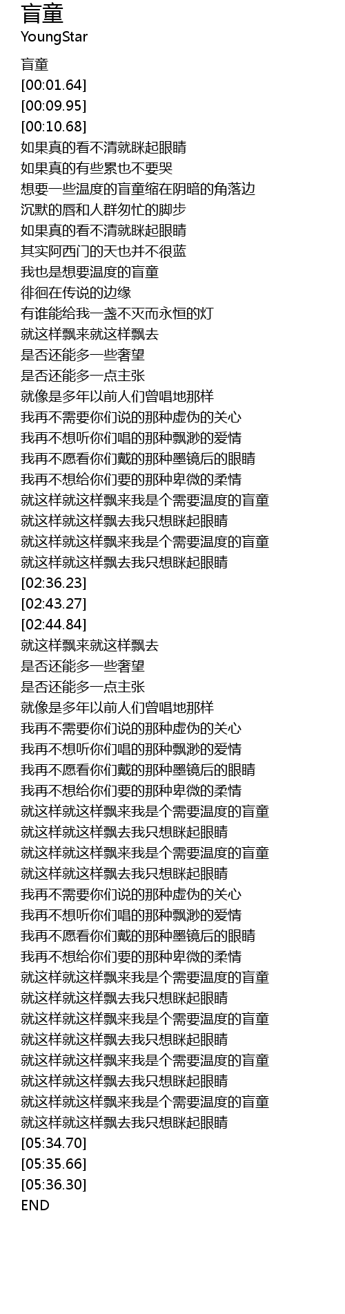 | [02:03.06] | 就这样就这样飘来我是个需要温度的盲童 |