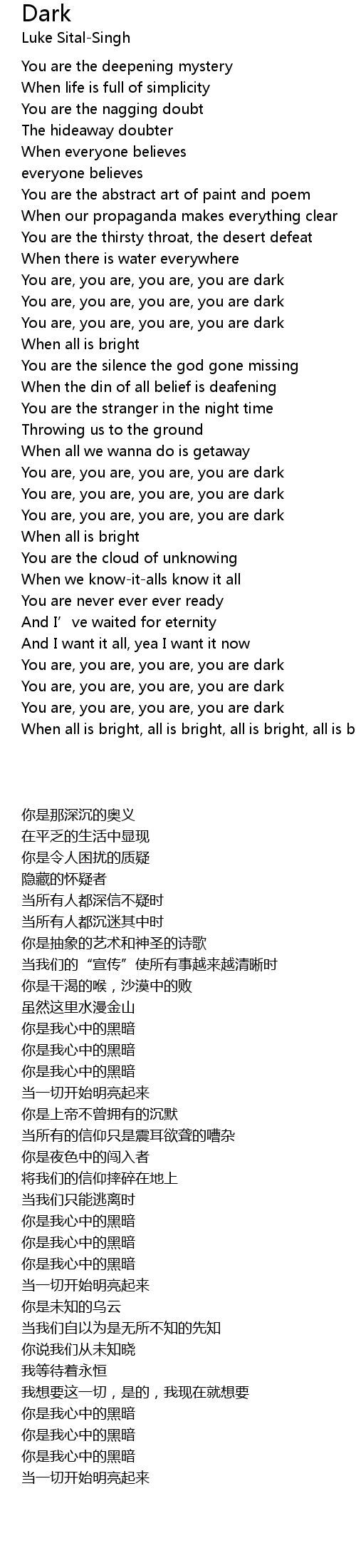 | [02:51.00] | You are, you are, you are, you are dark |
