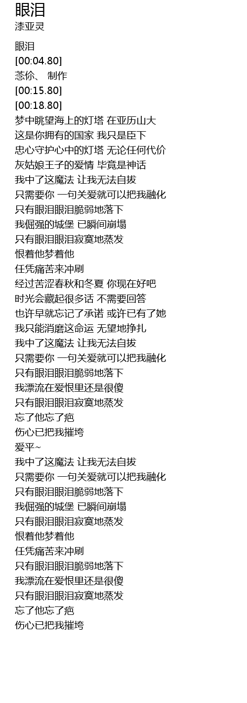 | [00:49.77] | 只有眼泪眼泪脆弱地落下 |