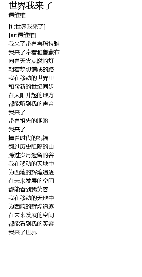 | [00:25.306] | 我来了带着喜玛拉雅 |