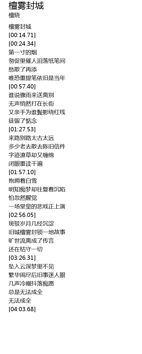 | [03:04.58] | 旧城檀雾封锁一地故事 |