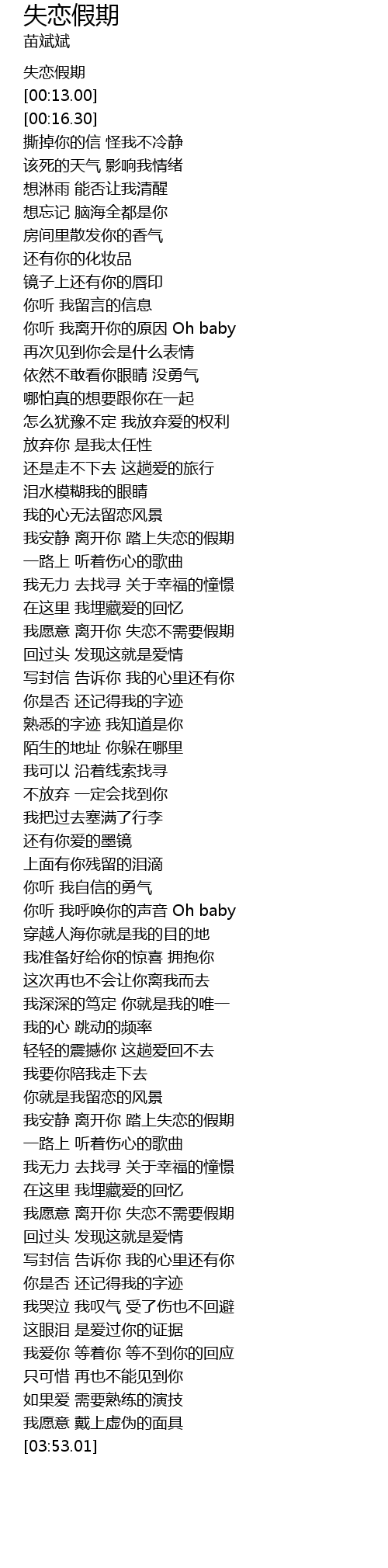 | [00:00.00] | 失恋假期 |