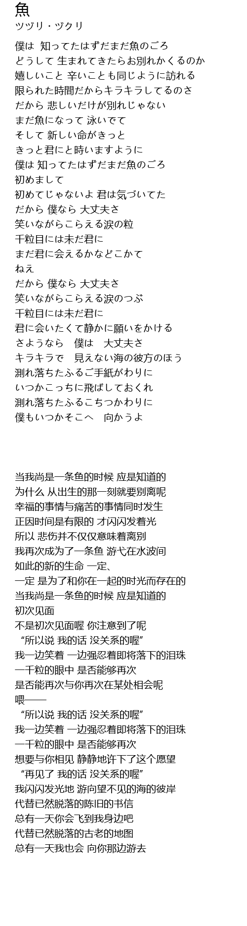 まだ魚になって 泳いでて |