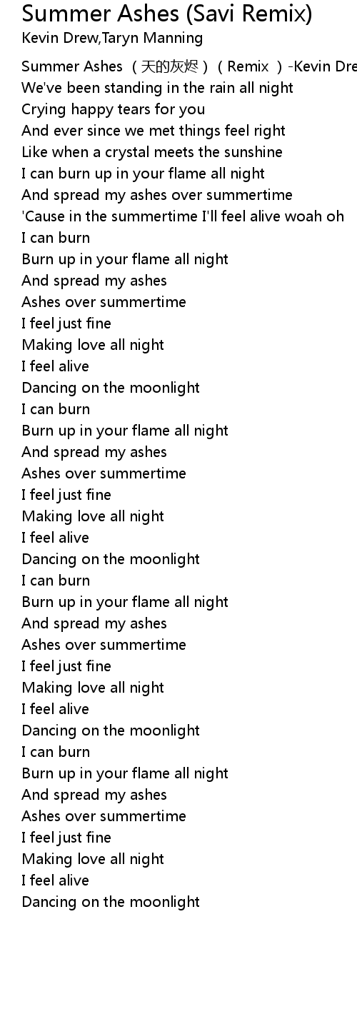 | [00:00.00] | Summer Ashes (天的灰烬)(Remix )-Kevin Drew /Taryn Manning |
