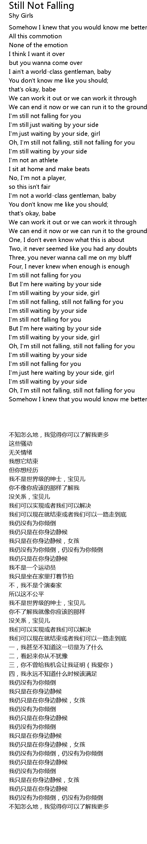 | [02:47.970] | I'm still not falling, still not falling for you |