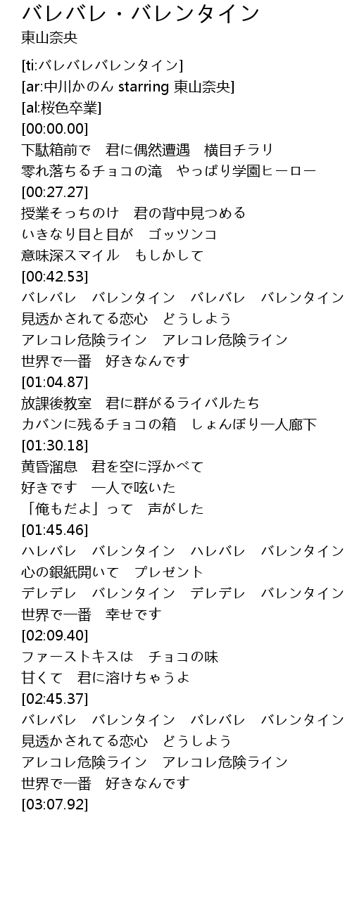 | [00:42.84] | バレバレ バレンタイン バレバレ バレンタイン |