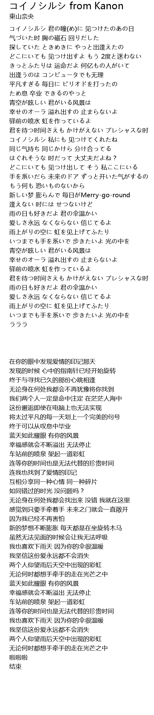 | Song | コイノシルシ from Kanon |