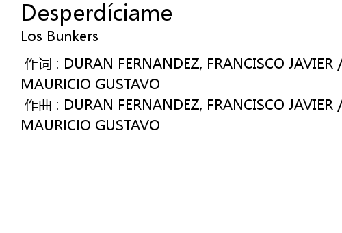 | [00:00.000] | 作词 : DURAN FERNANDEZ, FRANCISCO JAVIER / DURAN FERNANDEZ, MAURICIO GUSTAVO |