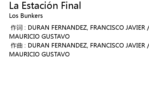 | [00:00.000] | 作词 : DURAN FERNANDEZ, FRANCISCO JAVIER / DURAN FERNANDEZ, MAURICIO GUSTAVO |