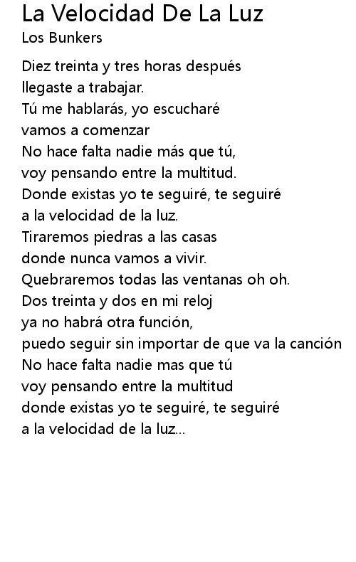 | Song | La Velocidad De La Luz |