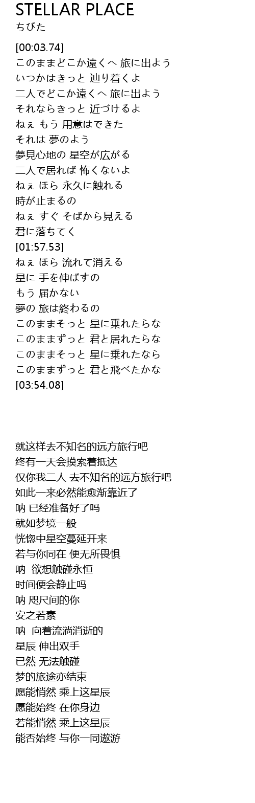 | [03:39.15] | このままそっと 星に乗れたなら |