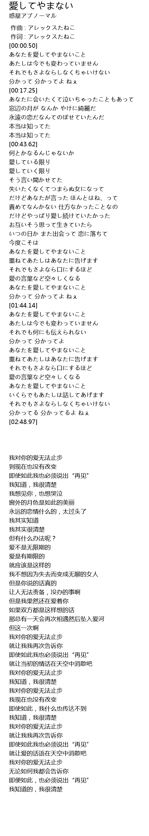 作词 : アレックスたねこ |