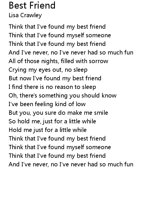 But now I've found my best friend |