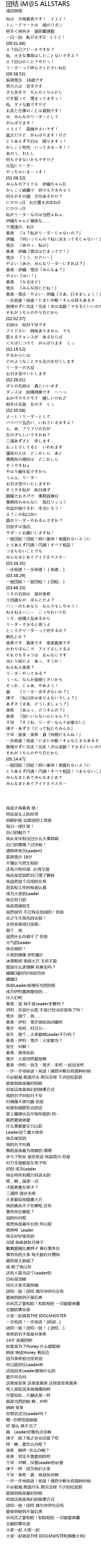 | [01:35.66] | 春香・伊織・雪歩「みんなぁ?」 |
