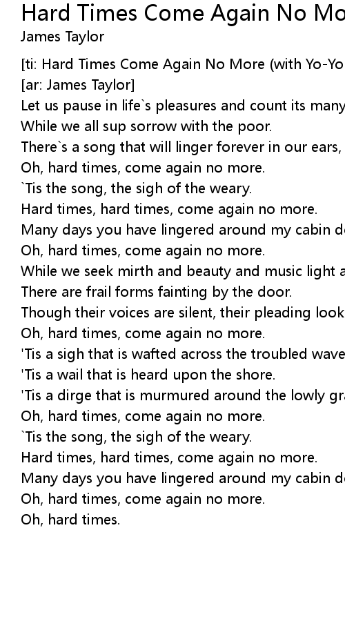 [ti: Hard Times Come Again No More (with Yo-Yo Ma, Edgar Meyer, Mark O'Connor)] |