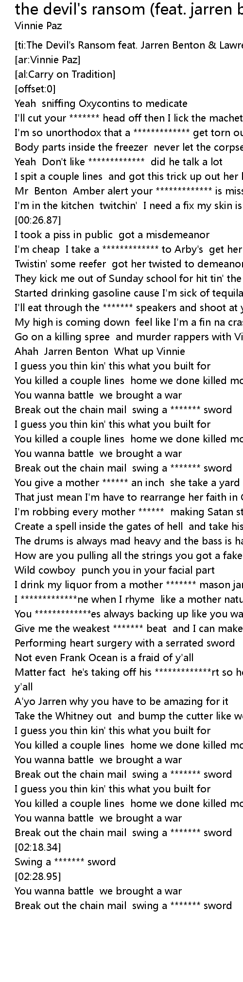 [ti:The Devil's Ransom feat. Jarren Benton & Lawrence Arnell] |