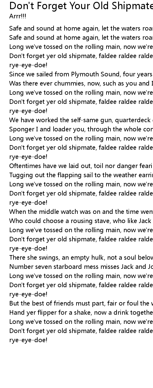 [00:46.100] Don't forget yer old shipmate, faldee raldee raldee raldee rye-eye-doe!