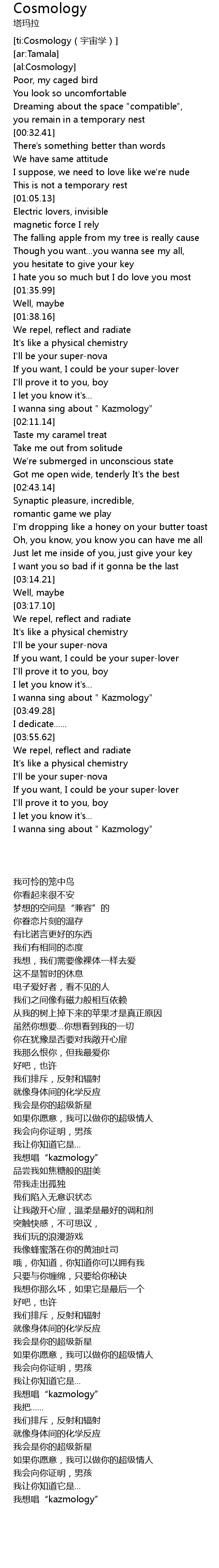 | [03:43.56] | I wanna sing about " Kazmology" |