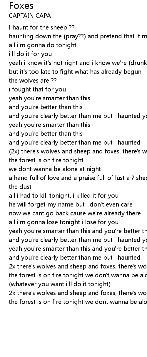 (2x) there's wolves and sheep and foxes, there's wolves and sheep and foxes |