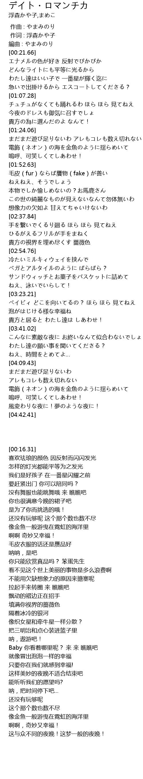 | [03:42.57] | こんなに素敵な夜に お終いなんて似合わないでしょ |