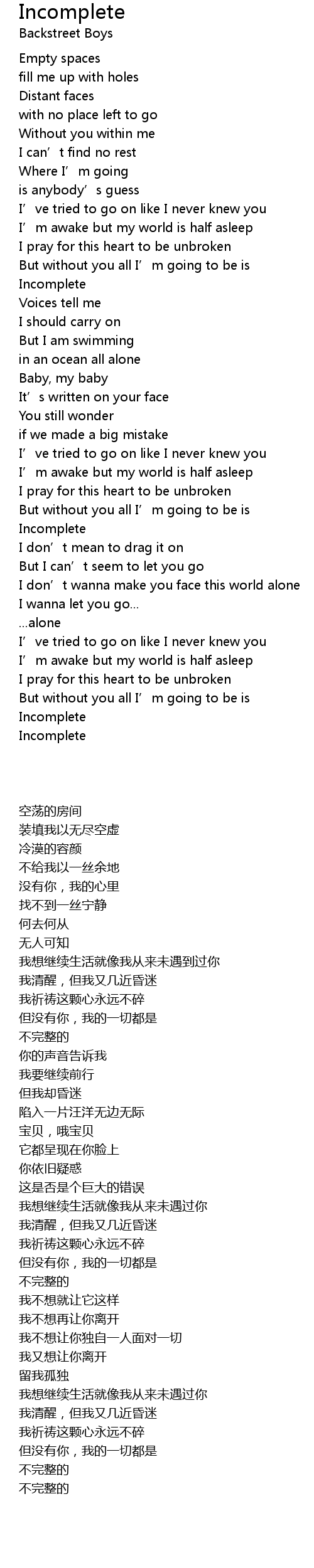 | Song | Incomplete |