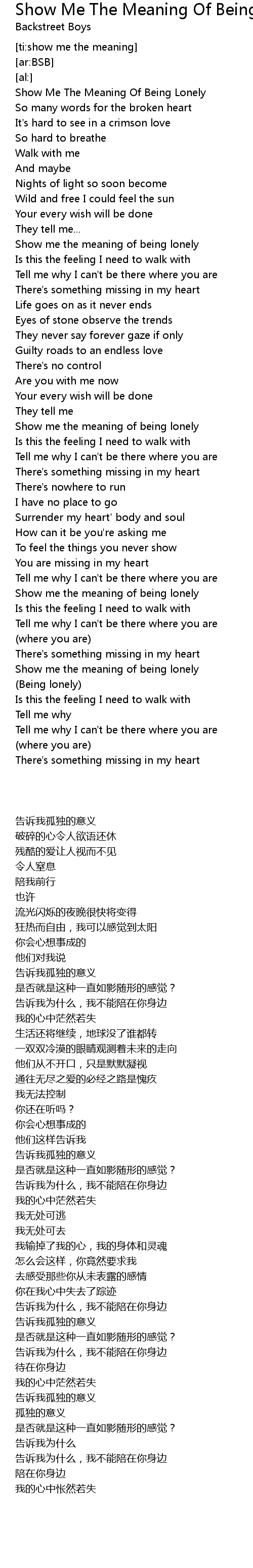[00:00.00] Show Me The Meaning Of Being Lonely