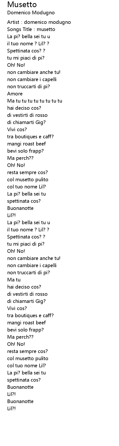 | Song | Musetto |