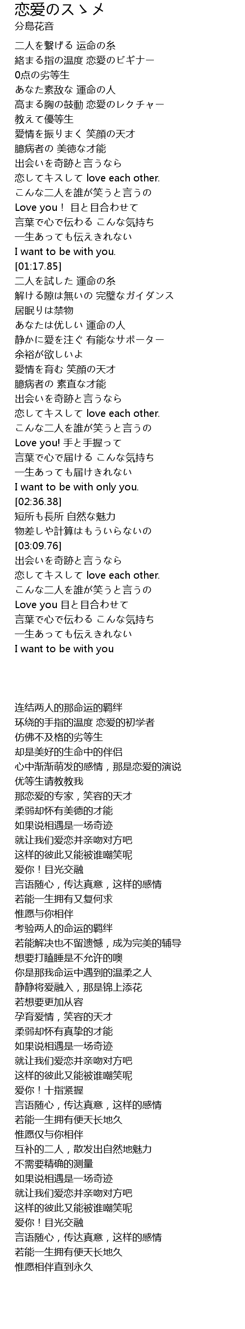 | [00:29.57] | 高まる胸の鼓動 恋愛のレクチャー |