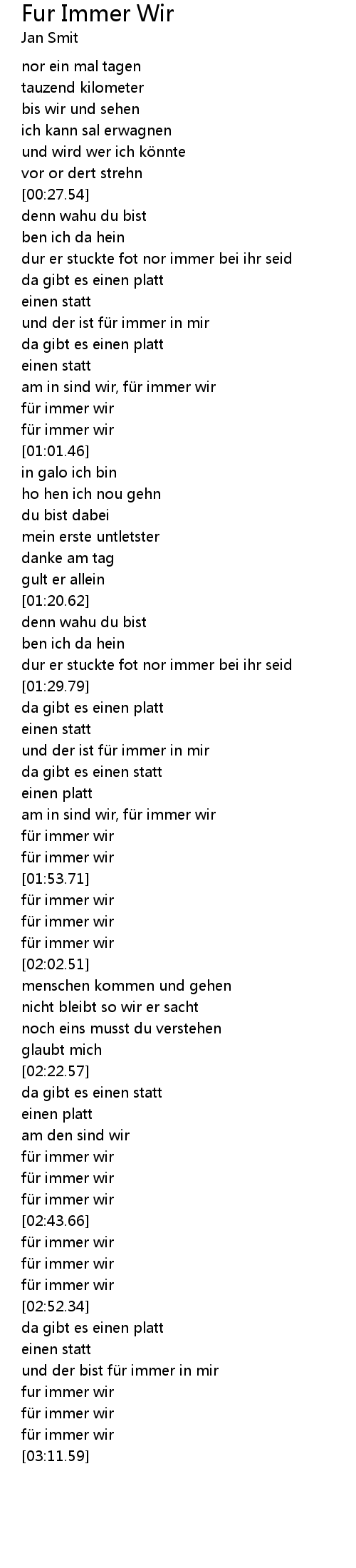 | [00:51.17] | am in sind wir, fü r immer wir |