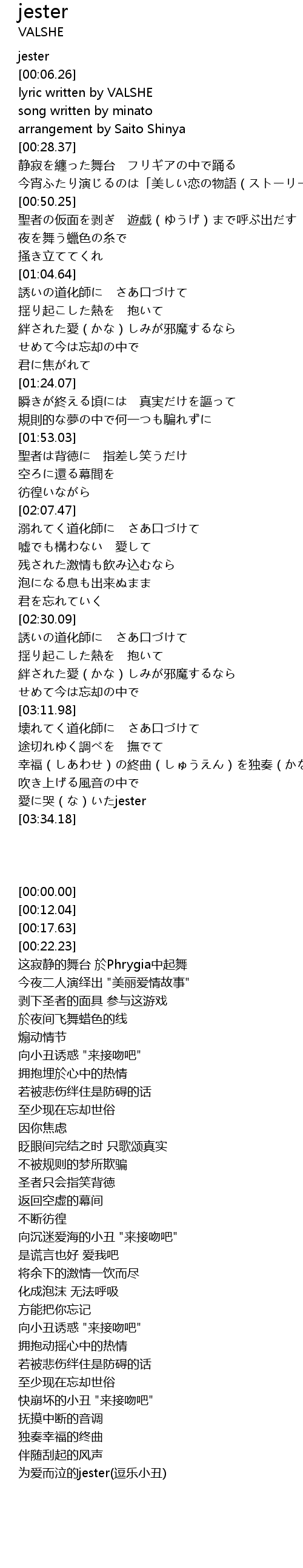 | [01:04.83] | 誘いの道化師に さあ口づけて |