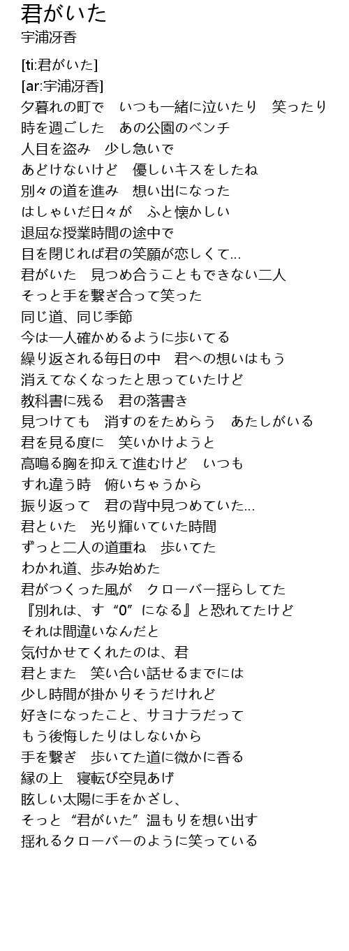 | [02:39.906] | 君がつくった風が クローバー揺らしてた |