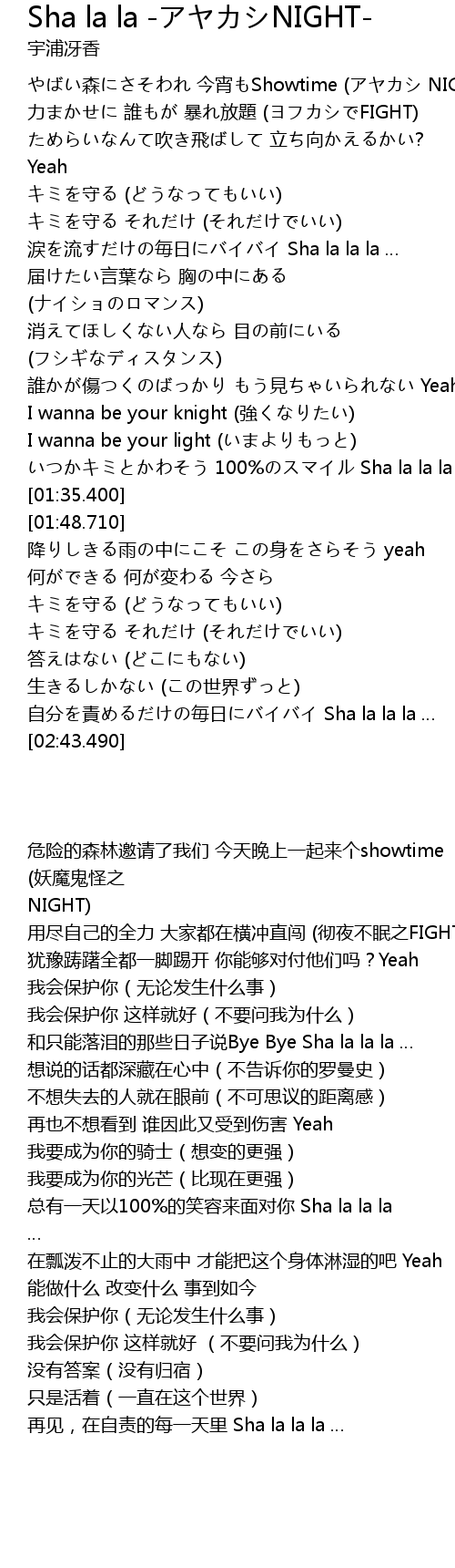 | [00:44.850] | lèi liú měi rì Sha la la la |