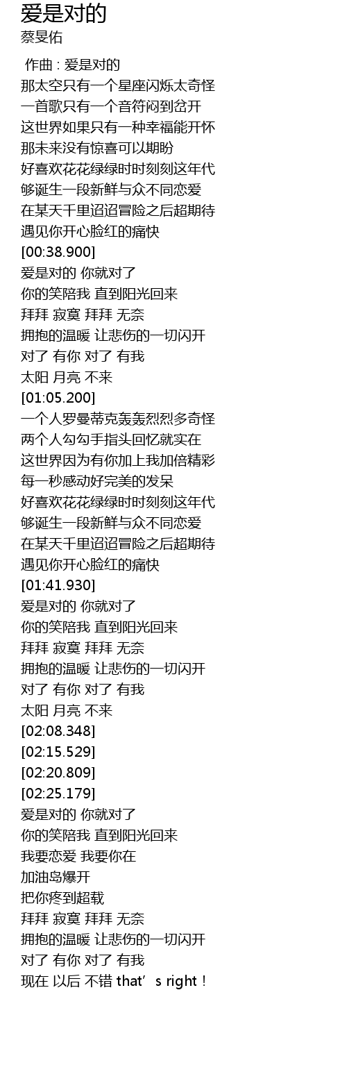 | [01:44.890] | 爱是对的 你就对了 |