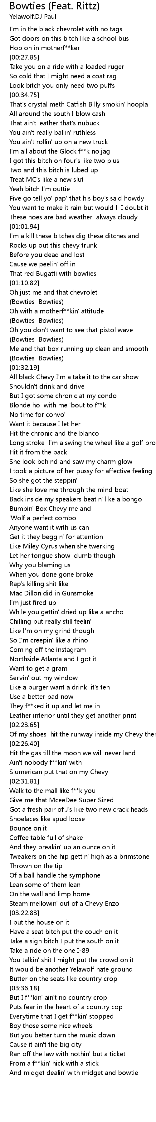 | [01:22.99] | (Bowties Bowties) |