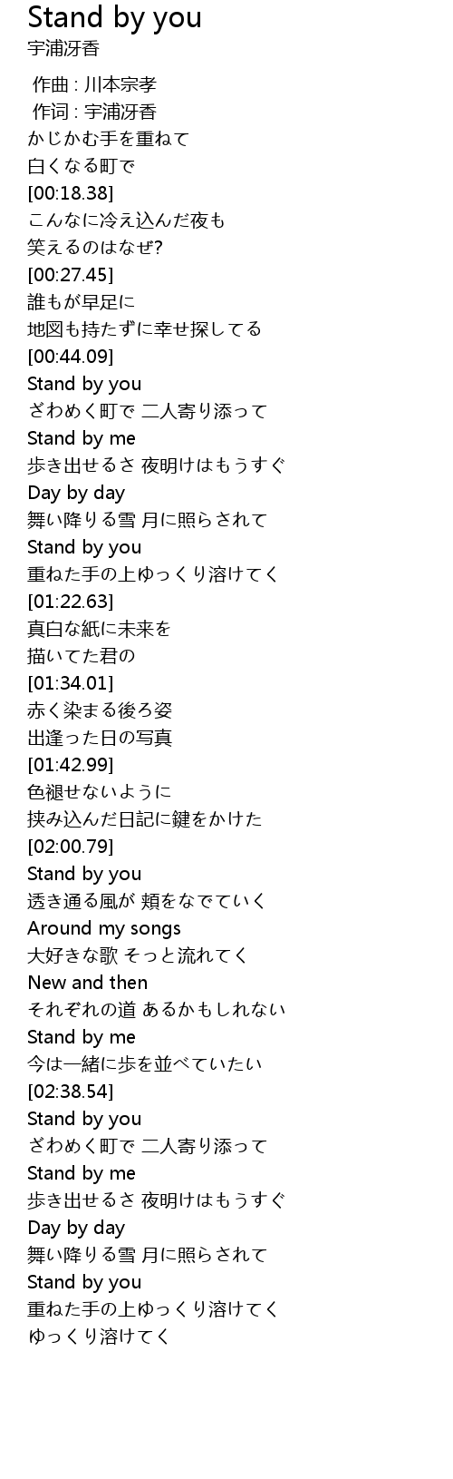 | [00:01.00] | 作词 : 宇浦冴香 |