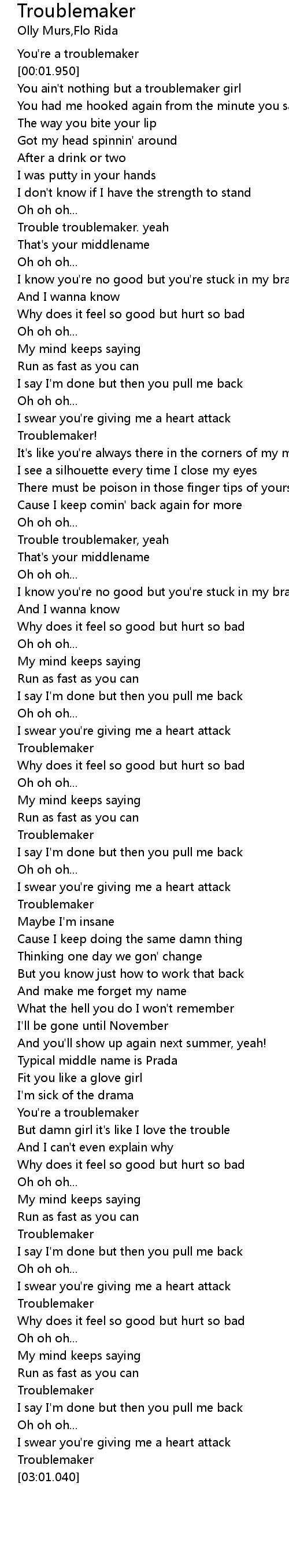 | [00:06.430] | You ain't nothing but a troublemaker girl |