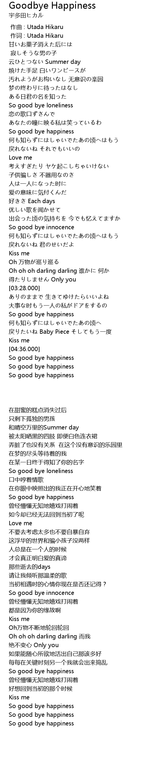| [00:00.00] | 作曲 : Utada Hikaru |