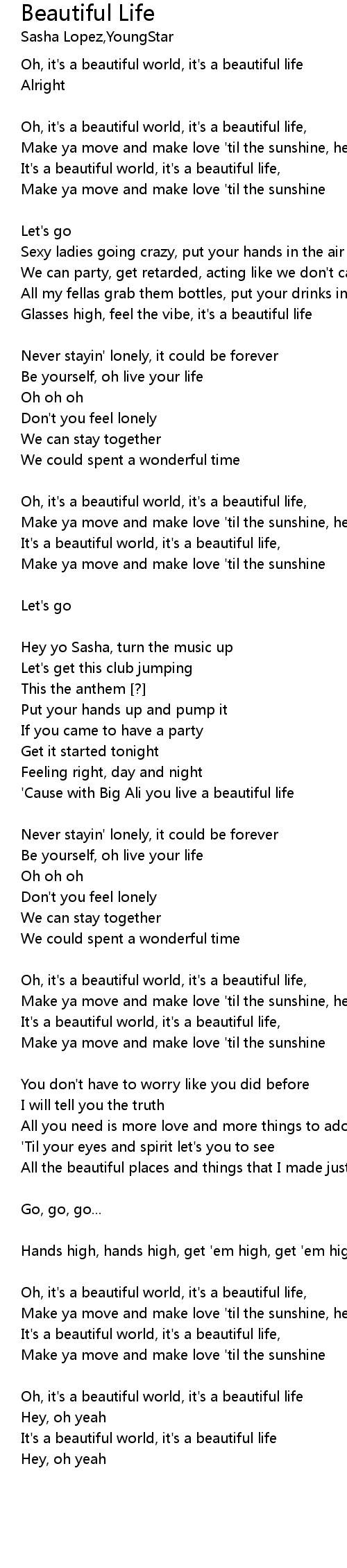 Oh, it's a beautiful world, it's a beautiful life |
