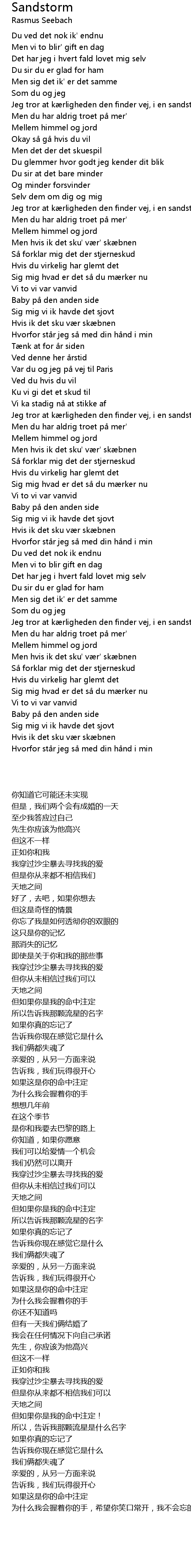 | [00:42.11] | Jeg tror at kærligheden den finder vej, i en sandstorm |
