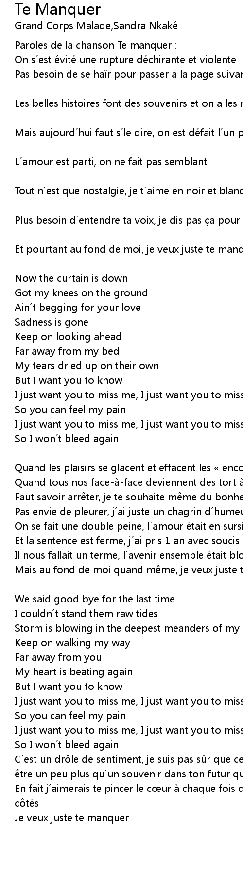 | Paroles de la chanson Te manquer : | |