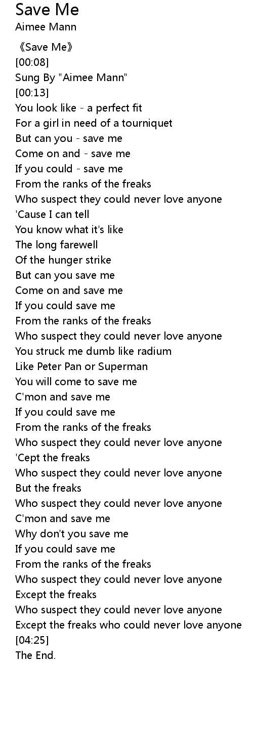 | [00:53] | If you could save me |