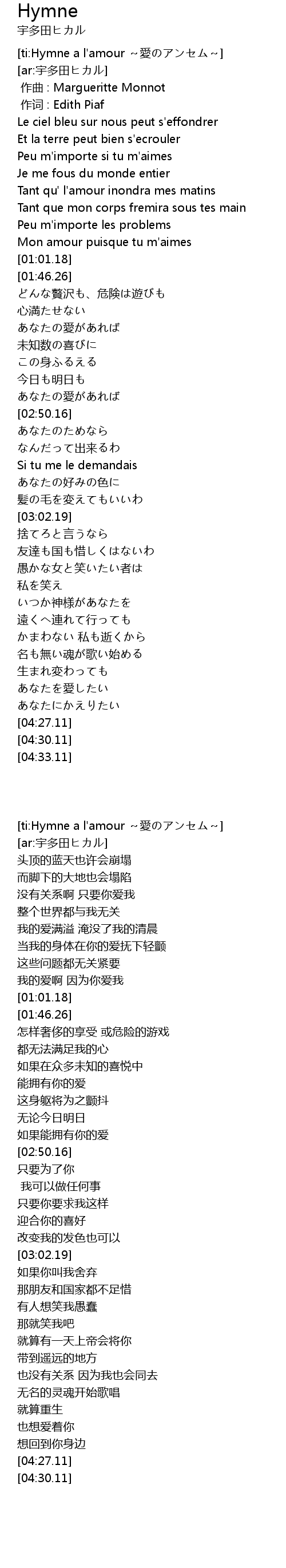 | [ti:Hymne a l'amour ~愛のアンセム~] | |