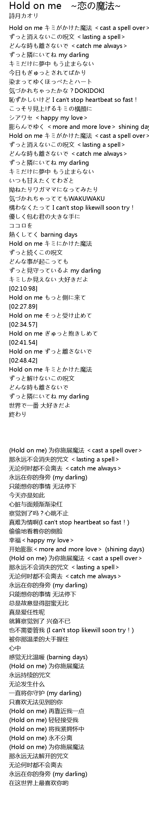 | [00:00.00] | Hold on me キミがかけた魔法 <cast a spell over> |