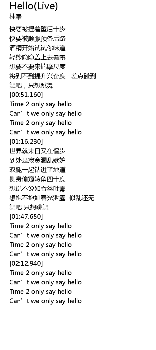 | [01:46.060] | wǔ ba zhǐ xiǎng tiào wǔ |