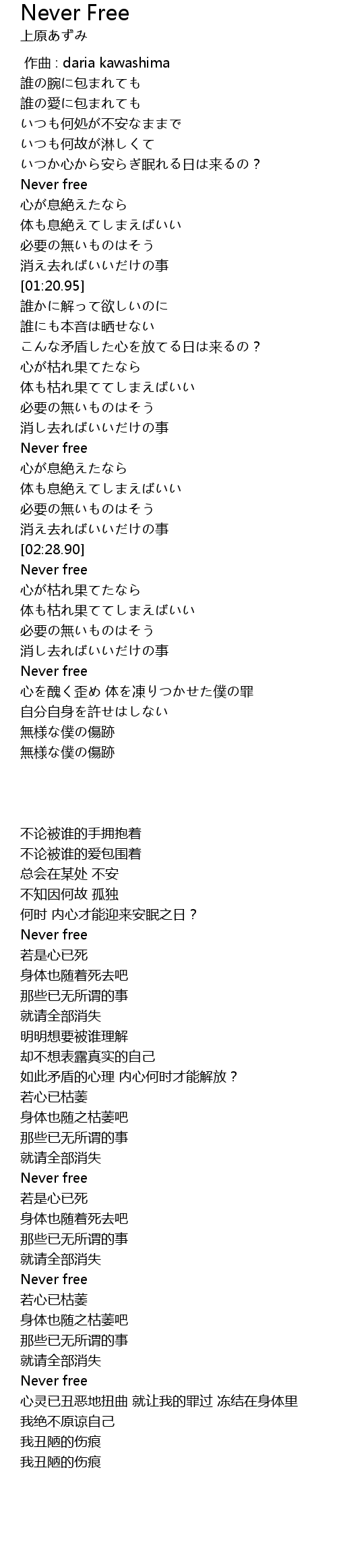 | [01:33.84] | こんな矛盾した心を放てる日は来るの? |