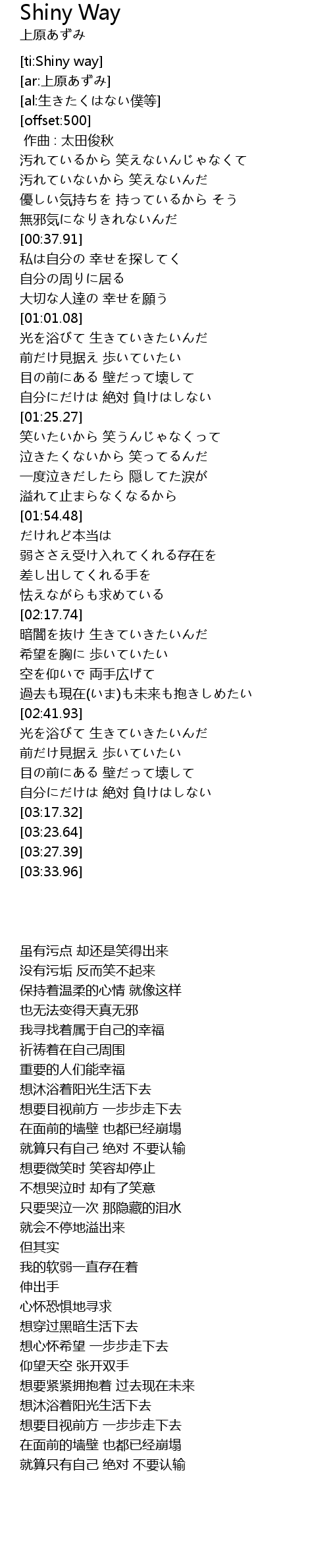 | [01:01.83] | 光を浴びて 生きていきたいんだ |