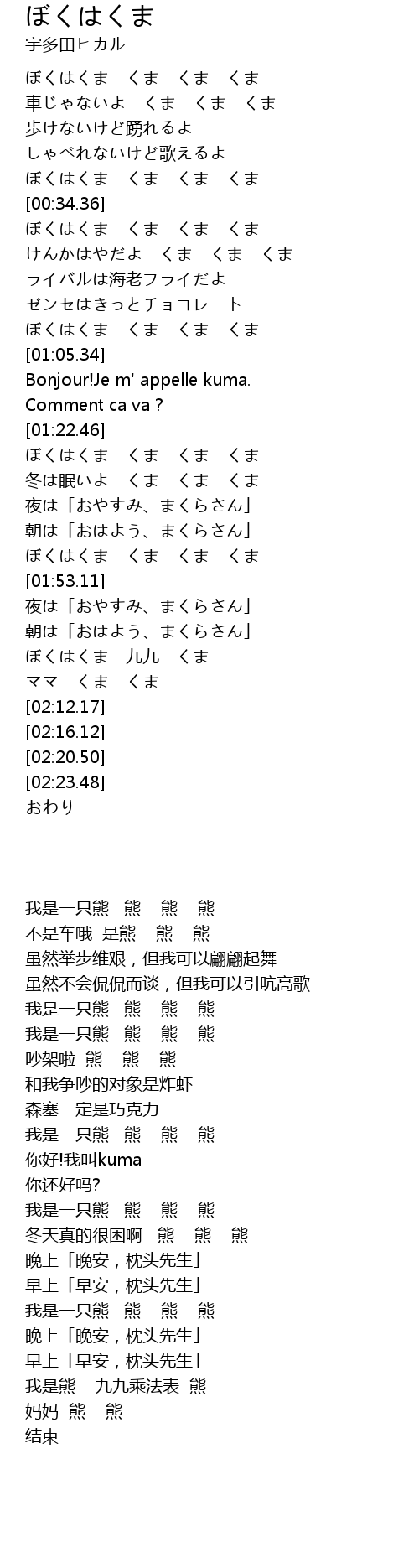 | [02:03.02] | ぼくはくま 九九 くま |