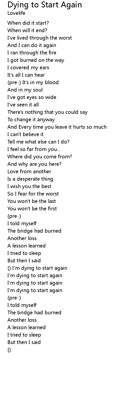 Dying to Start Again Lyrics