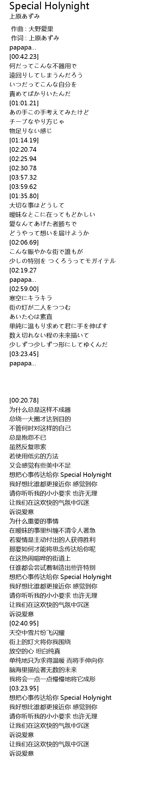 | [03:42.99][02:20.74][01:15.91] | 心が伝えたがる Special Holynighy |